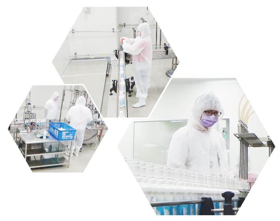 本公司產品皆於Class 100,000無塵室生產製造,採用食品級不鏽鋼自動充填系統、連貫性自動化充填及包裝作業 ; 並重金引進高科技造水與殺菌設備,以菌水多次清潔工程、生產中多道精密過濾裝置,嚴格執行生產前後全廠房與設備,確保產品品質,是您最專業、值得信賴的好夥伴。